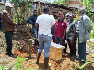 GIOFAM members being trained on bees keeping and marketing of bees products. Rethinking Nature Regeneration in